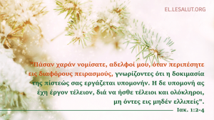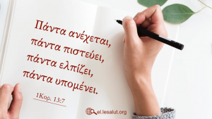 2Κορ. 1:7. επειδή εξεύρομεν ότι καθώς είσθε κοινωνοί των παθημάτων, ούτω και της παρηγορίας. 1Κορ. 13:7. πάντα ανέχεται, πάντα πιστεύει, πάντα ελπίζει, πάντα υπομένει. Ψαλ. 62:...Βιβλικοί στίχοι ανά θέμα – Δοκιμασία