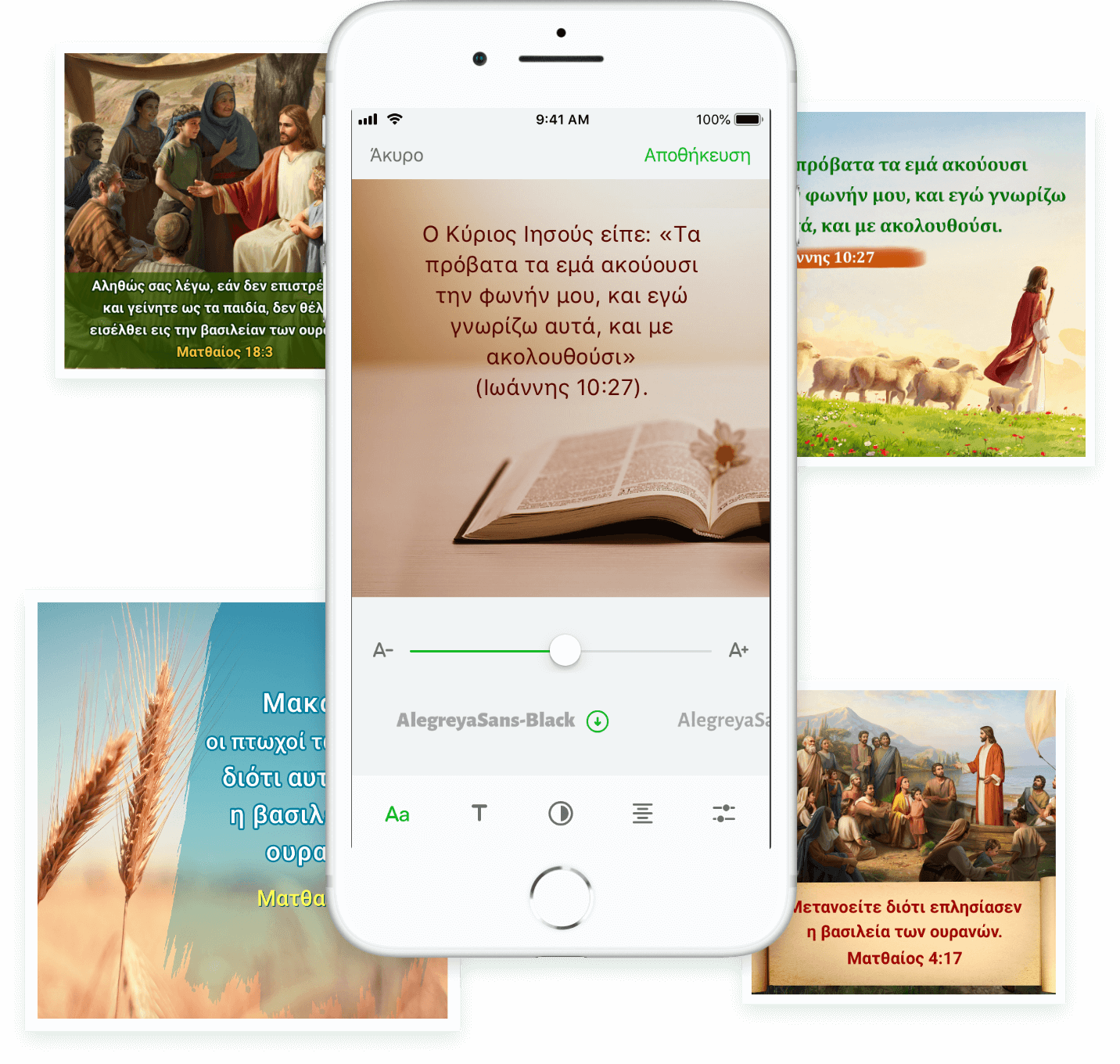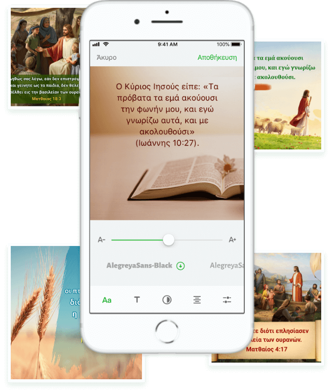 Επιλέξτε έναν στίχο στη σελίδα της Βίβλου για να προσθέσετε έναν σελιδοδείκτη ή να επισημάνετε, και χρησιμοποιήστε τη λειτουργία Σημειώσεις για να καταγράψετε, ανά πάσα στιγμή, ό,τι έχετε αποκομίσει από τη μελέτη των Γραφών.